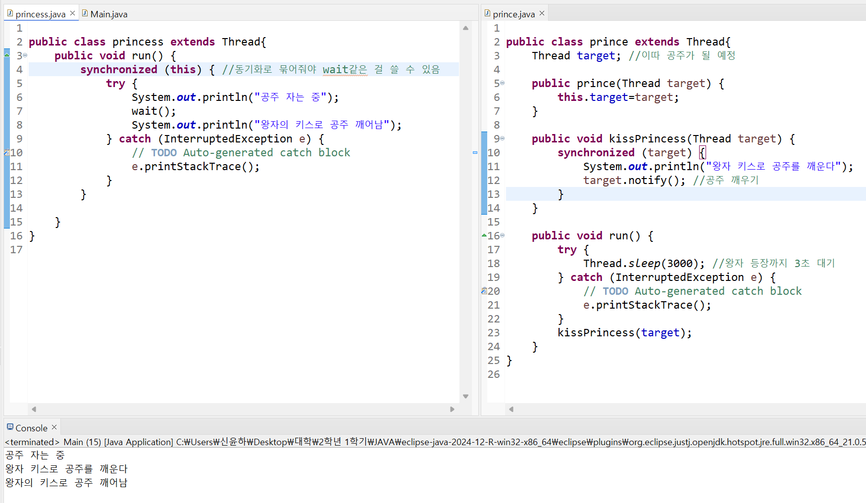 Thread.sleep(3000); //왕자 등장까지 3초 대기