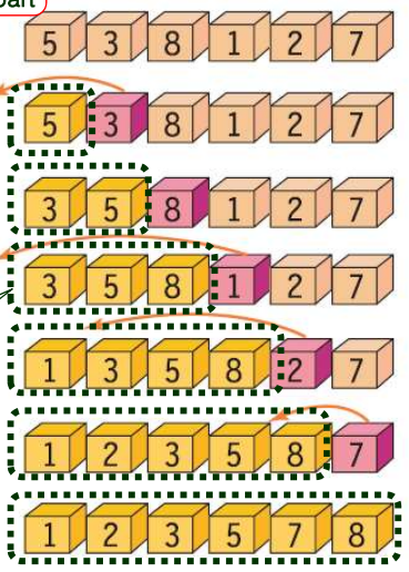 + 이미 정렬 되어있으면 O(n) - 대부분 정렬되어 있으면 매우 효율적