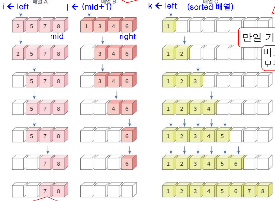 int i = left; //정렬된 왼쪽 리스트
